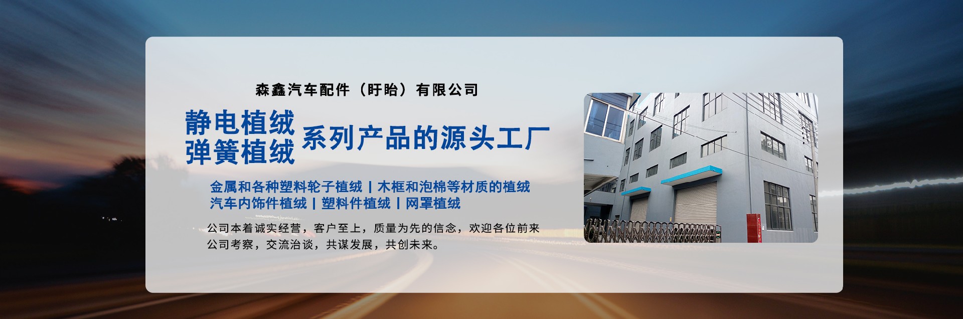 森鑫汽车配件(盱眙)有限公司是一家专业从事静电植绒,生产加工的企业,坐落在历史文化悠久,风景秀丽的江苏盱眙淮河之边。公司经过全体员工不断努力···